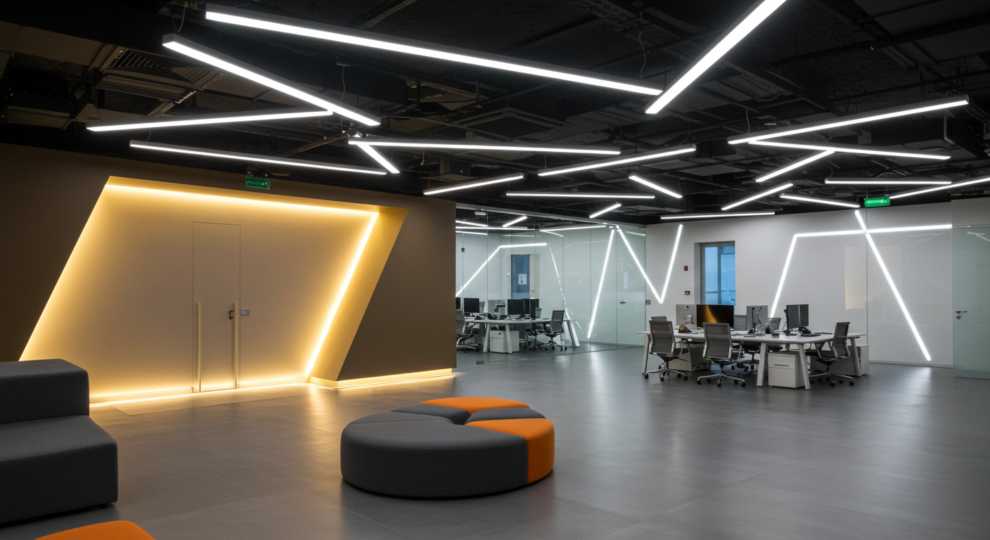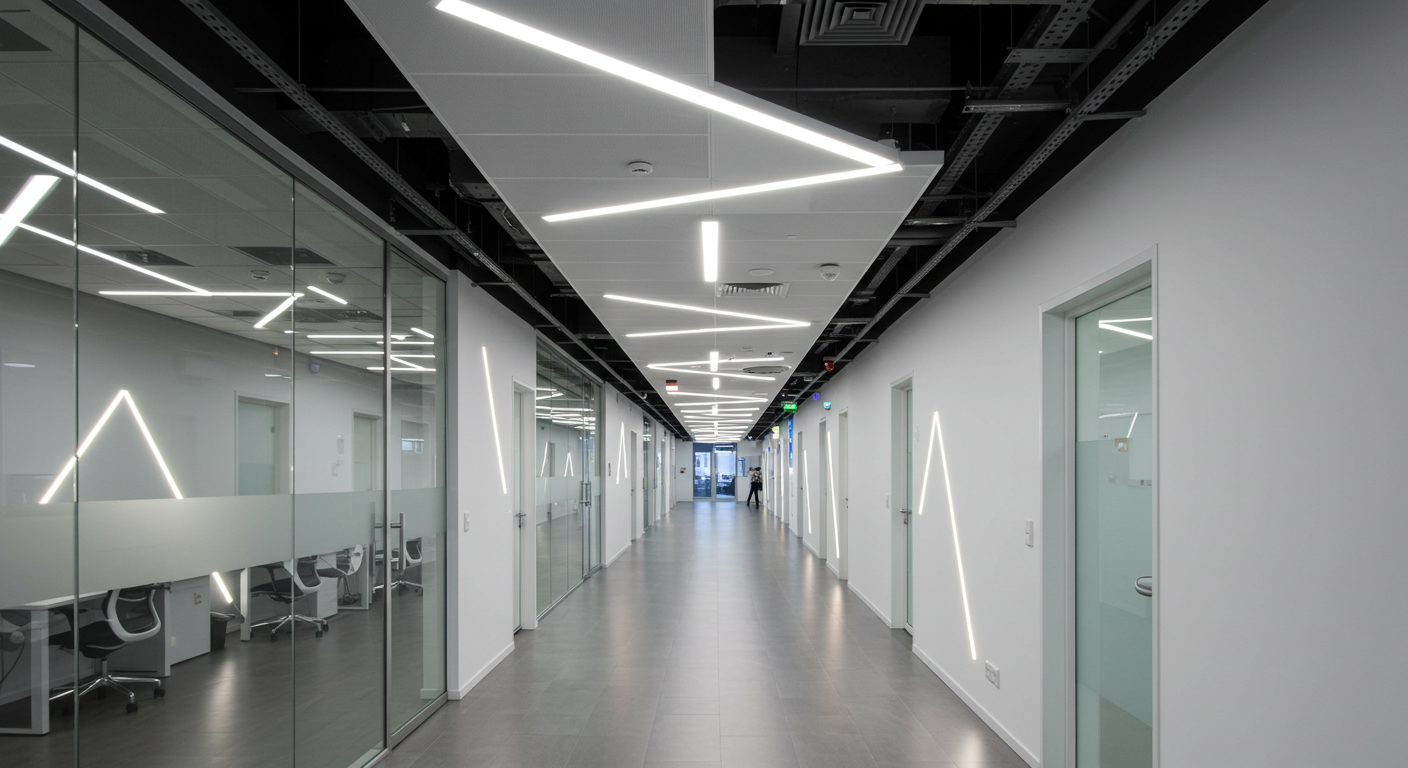 Für dieses Bürogebäude entwickelten wir ein modernes und funktionales Beleuchtungskonzept, das den Arbeitsalltag unterstützt und gleichzeitig eine angenehme Atmosphäre schafft. Der Fokus lag auf blendfreier Beleuchtung und Energieeffizienz, um die Arbeitsqualität zu verbessern und Betriebskosten zu senken.