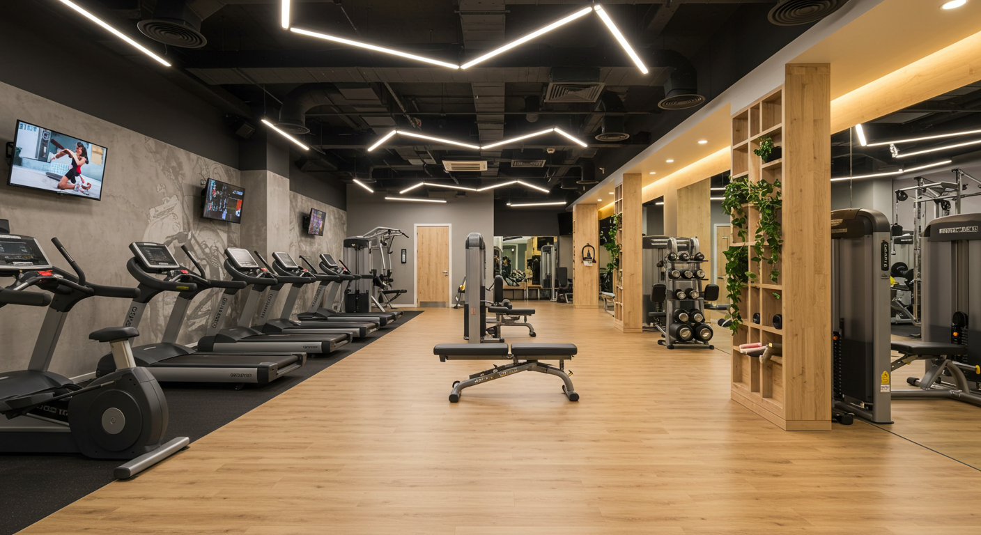In diesem Fitnessstudio haben wir ein Beleuchtungskonzept realisiert, das sowohl funktionale Anforderungen als auch atmosphärische Aspekte berücksichtigt. Die Herausforderung bestand darin, helle, motivierende Trainingsbereiche zu schaffen und gleichzeitig Ruhezonen optisch abzugrenzen.